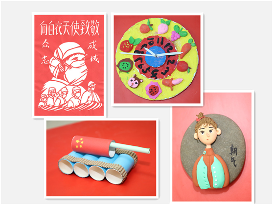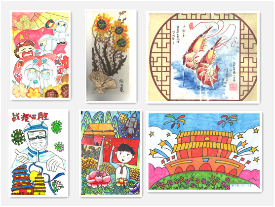 此次征集活動共收到作品91件,其中不僅有硬筆、毛筆、蠟筆、水粉畫、景物素描等書繪類創(chuàng)作,還有色彩斑斕的手工作品。孩子們用手工展現(xiàn)童心世界,用畫筆贊美抗擊新冠肺炎疫情的英雄,用丹青書寫中華文化。作品表現(xiàn)力強,充滿奇思妙想,全面展示出孩子們豐富的想象力和動手能力,表現(xiàn)出新時代少年兒童的別樣風(fēng)采。