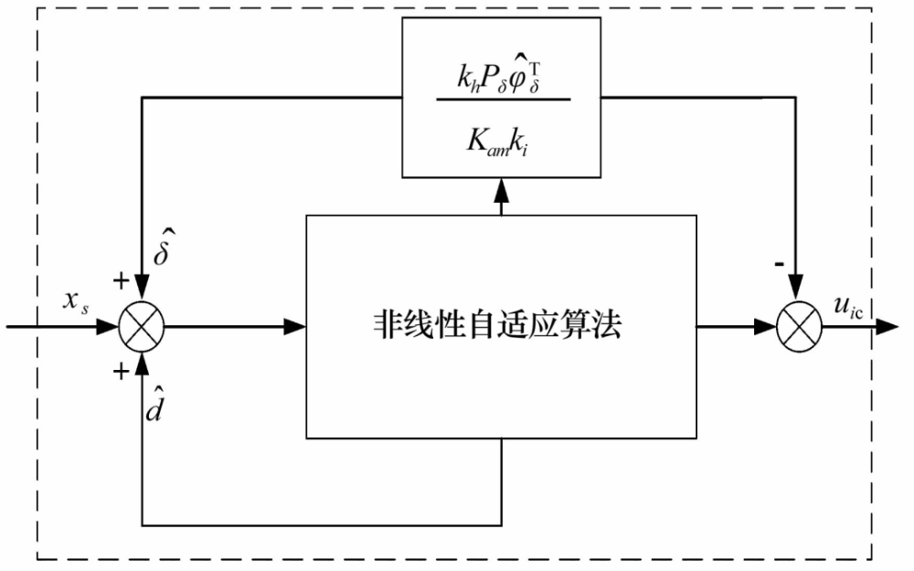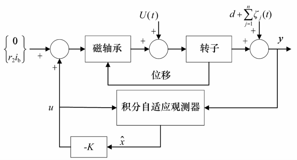 另外,文獻(xiàn)[26]提出了一種基于頻域自適應(yīng)LMS算法的諧波振動抑制方法,對每個(gè)權(quán)值設(shè)置相應(yīng)的步長并實(shí)時(shí)調(diào)整,在保證穩(wěn)態(tài)精度的同時(shí)提高了收斂速度。文獻(xiàn)[27]提出了一種新的積分自適應(yīng)觀測器(圖9),用于識別傳感器誤差的直流和諧波含量并同時(shí)估計(jì)系統(tǒng)狀態(tài),試驗(yàn)表明當(dāng)系統(tǒng)同時(shí)受到測量誤差和不平衡干擾時(shí)能有效減小位移和電流幅值。文獻(xiàn)[28]提出了一種針對低次主導(dǎo)諧波的通用選擇分?jǐn)?shù)階重復(fù)控制方法,實(shí)現(xiàn)了任意轉(zhuǎn)速下快速高精度的諧波電流抑制。
